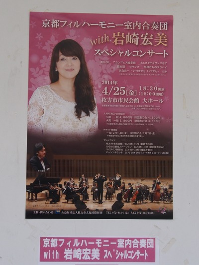 コンサート 日々徒然 2014.04.252021.12.28 近くにある枚方市民会館で開かれたコンサートへ行ってきました。 この日はデビューされてちょうど39周年目の記念日やったそうです。 親衛隊の方たちが最前列で応援されていました。 綺麗やし、もちろんですが歌も凄く上手かったです。 さだまさし作曲の「いのちの理由」をうたっておられたんですが、本当に名曲ですね。 いい曲は理屈なしにいい曲やと思えます。 つつじが咲いてました。
