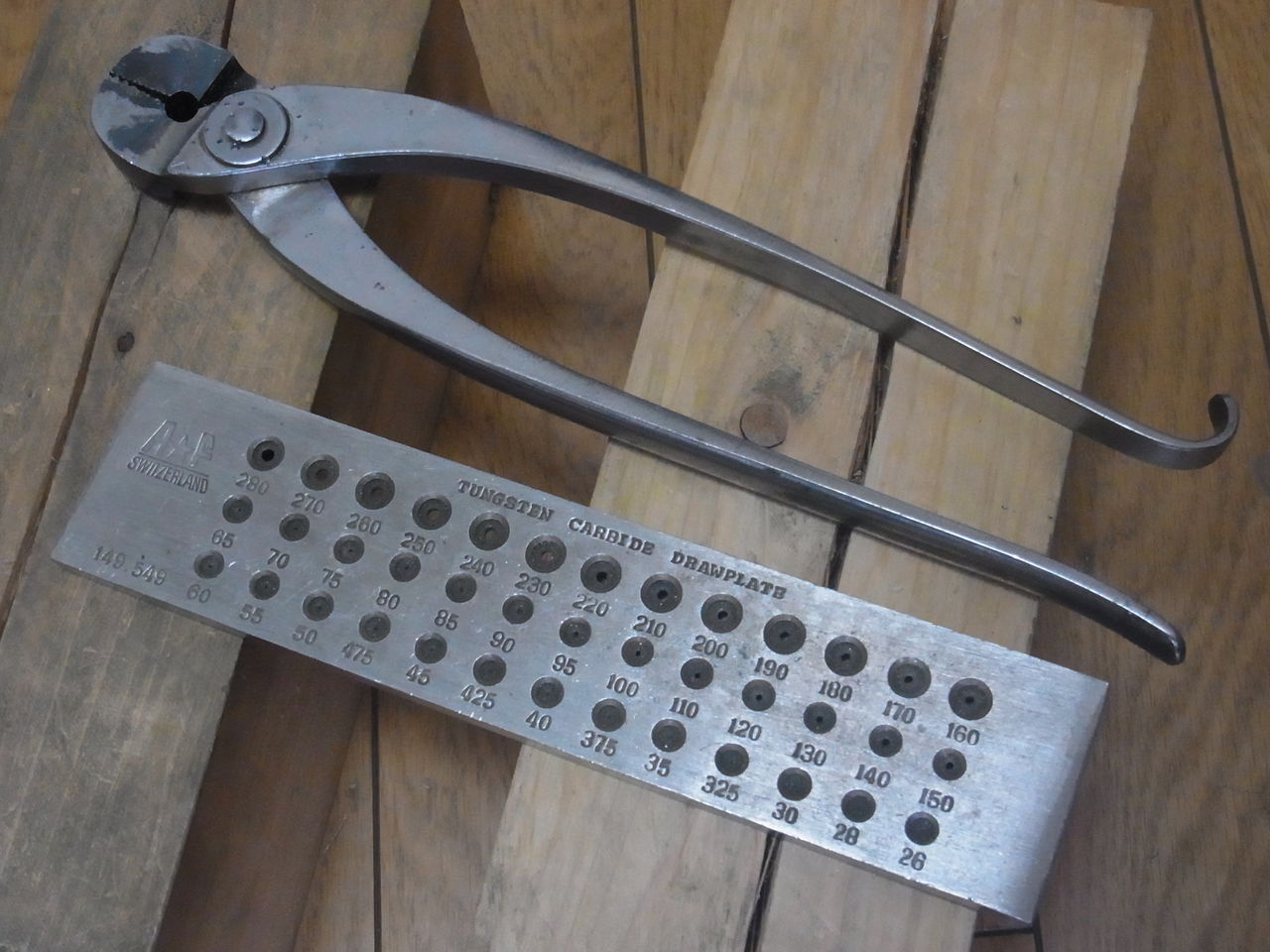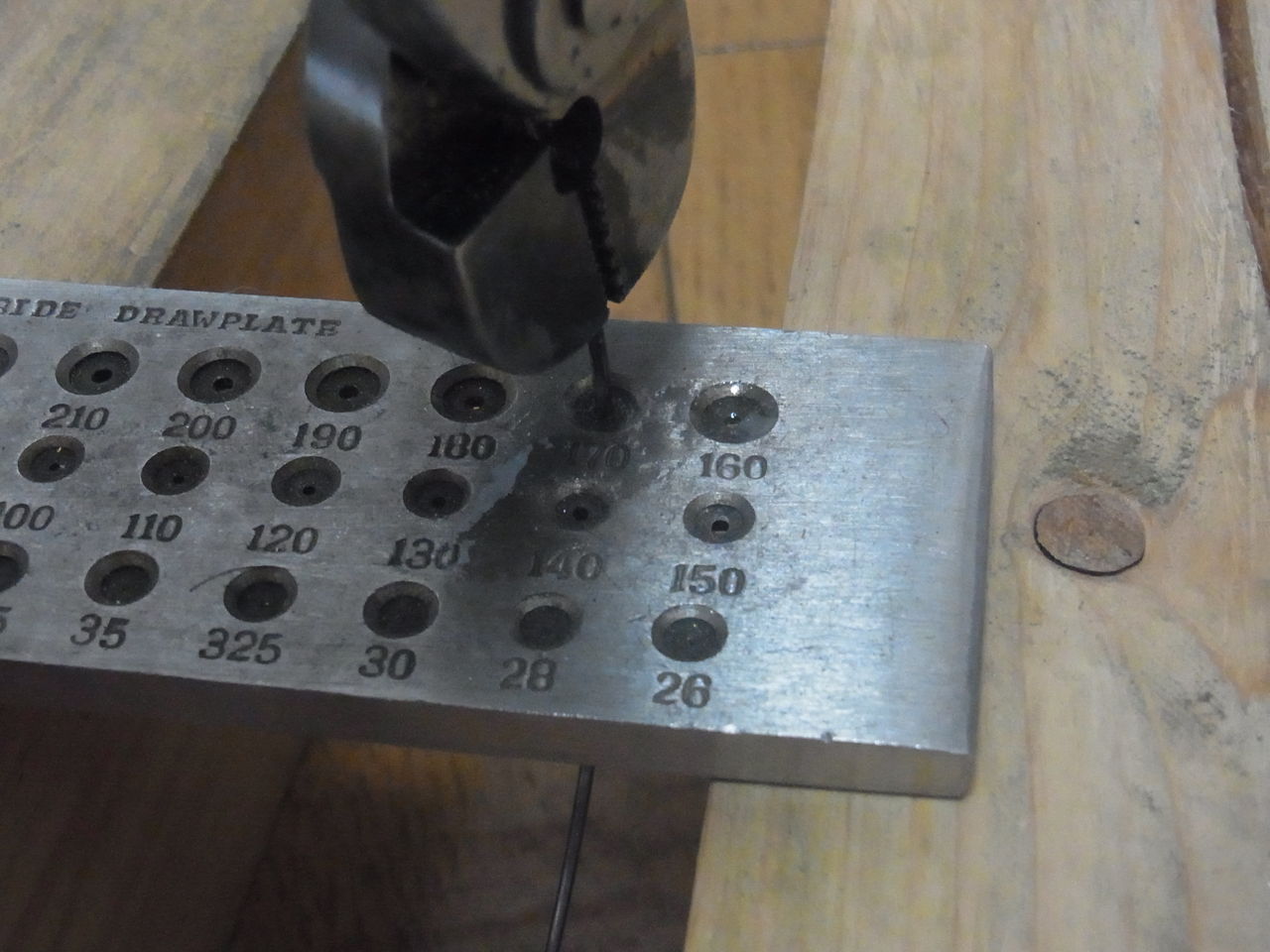 この様に使います。ヤットコで銀線の端をつまんで引っ張ります。