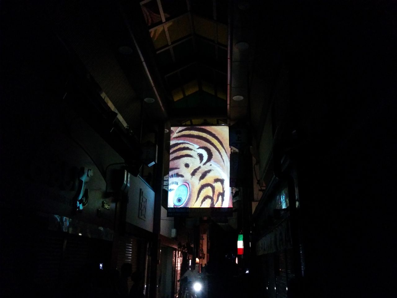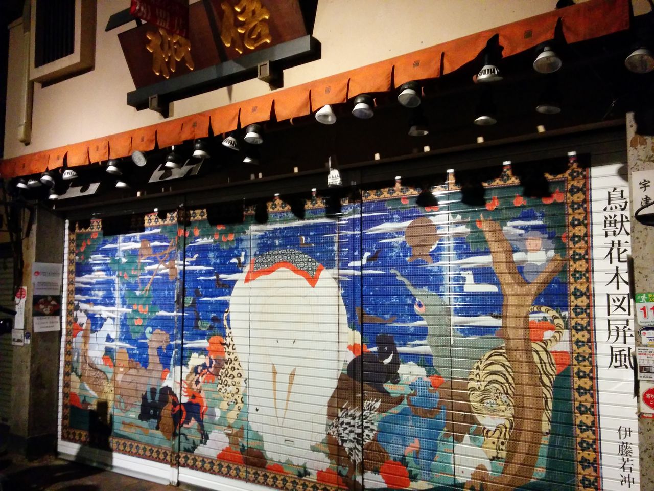 仕事終わってから帰り道に錦を歩いたら伊藤若冲生誕300年記念ナイトミュージアムやってました。